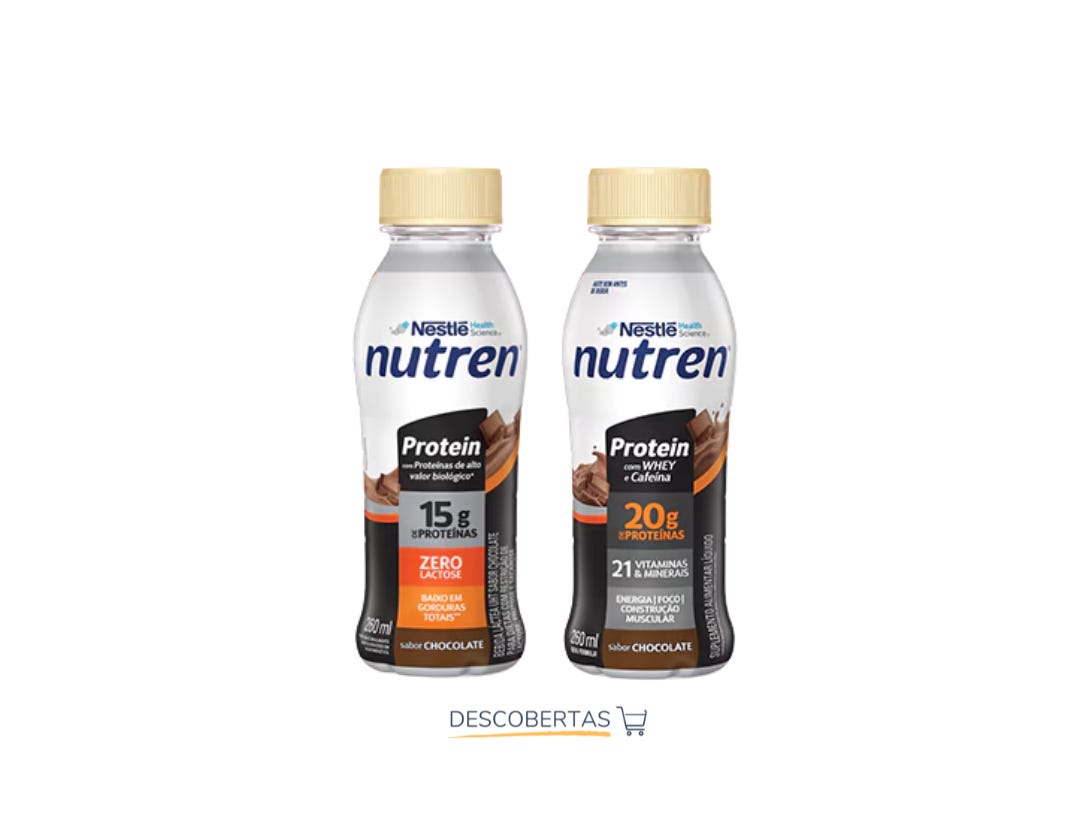 Se tem uma coisa que a Nestlé faz bem é distribuir os seus produtos, e com o Nutren Protein pronto para beber não é diferente: ele está nas lojas de conveniência, nas grandes redes de supermercados e até nas geladeiras das farmácias. Em versões com 15 e 20 gramas de proteínas por unidade, vem em garrafas de 260 ml — com rótulos cheios de promessas.
