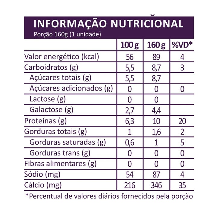 INGREDIENTES: Leite e/ou leite reconstituído semidesnatado, concentrado proteico de leite, leite em pó desnatado, enzima lactase e fermento lácteo.